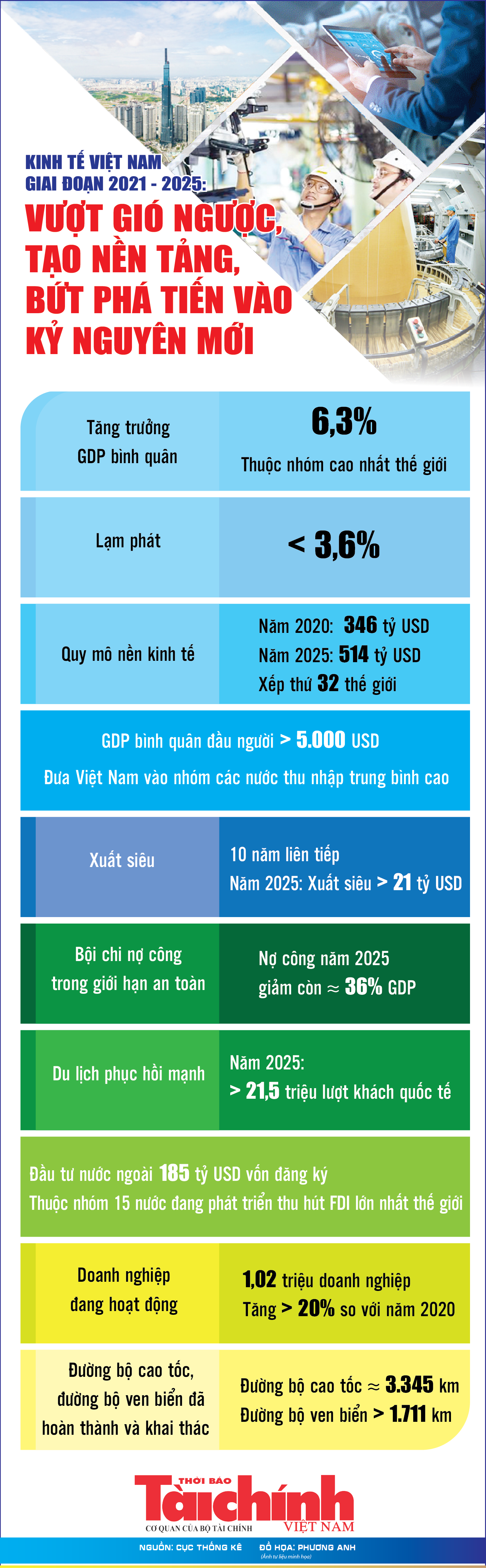 Infographics: Kinh tế Việt Nam giai đoạn 2021 - 2025: Vượt gió ngược, tạo nền tảng, bứt phá tiến vào kỷ nguyên mới