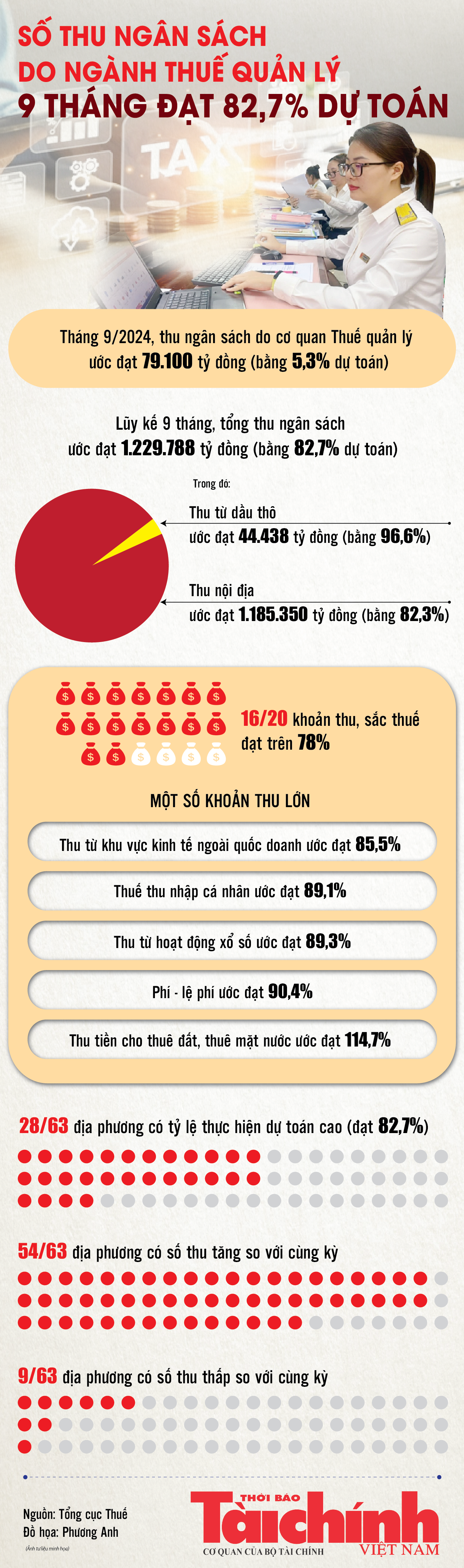Infographics: Ngành Thuế thu ngân sách nhà nước 9 tháng ước đạt 1.229.788 tỷ đồng