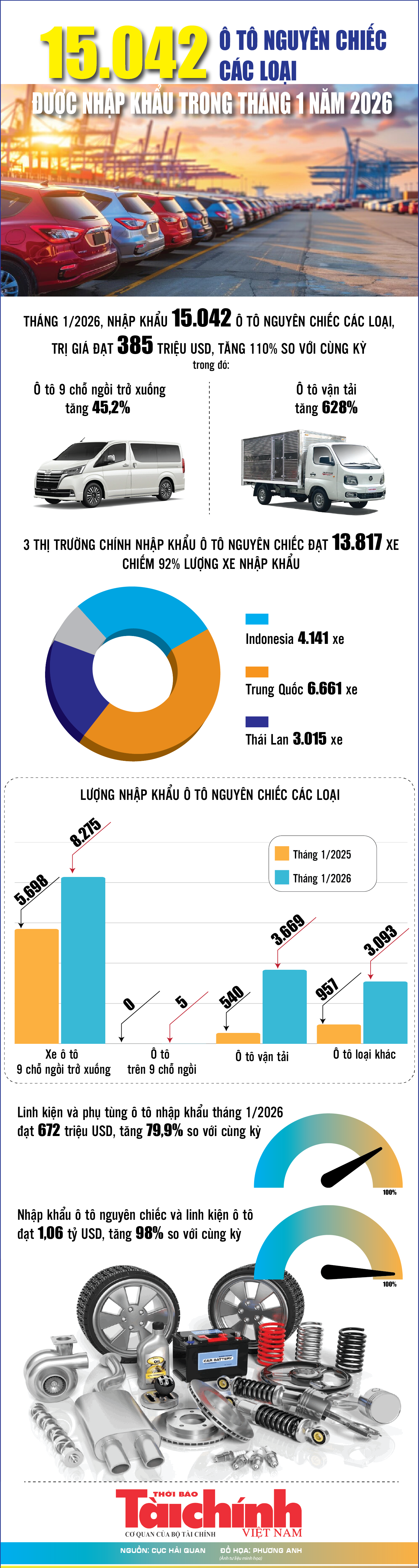 Infographics: Tháng 1/2026, nhập khẩu ô tô nguyên chiếc và linh kiện đạt gần 1,06 tỷ USD