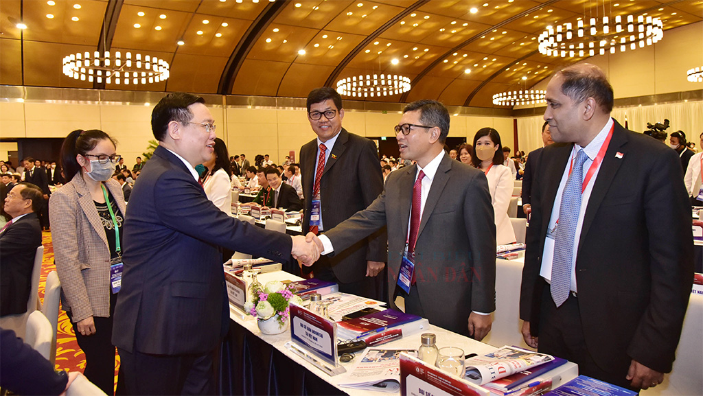 | Thủ tướng Chính phủ Phạm Minh Chính, Chủ tịch Quốc hội Vương Đình Huệ và các đại biểu dự Diễn đàn Kinh tế - Xã hội Việt Nam 2022. |
